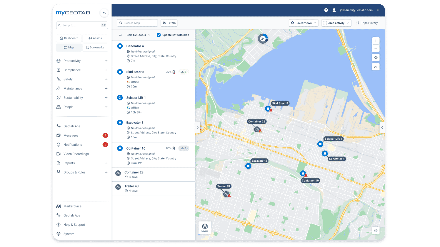 Behalten Sie Ihre gesamte Fahrzeugflotte in Echtzeit im Blick. Mit der Geotab GO-Technologie erhalten Sie präzise Standortdaten, Fahrtenbücher und umfassende Einblicke in die Nutzung Ihrer Fahrzeuge. Optimieren Sie Routen, reduzieren Sie Leerfahrten und steigern Sie die Produktivität Ihres Fuhrparks.